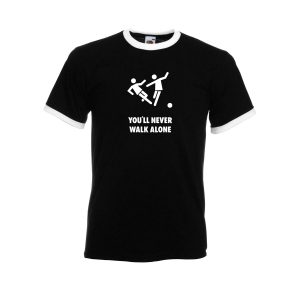 • Auch bzgl. der Aufbringung des ebenfalls strapazierfähigen Flexdrucks (silber- oder goldfarben mit Glitzereffekt) wird eine problemloses Wäschen des Shirts mit bis zu 40 Grad empfohlen, zudem das „Drehen auf links“, also das Shirt von außen nach innen umzudrehen.